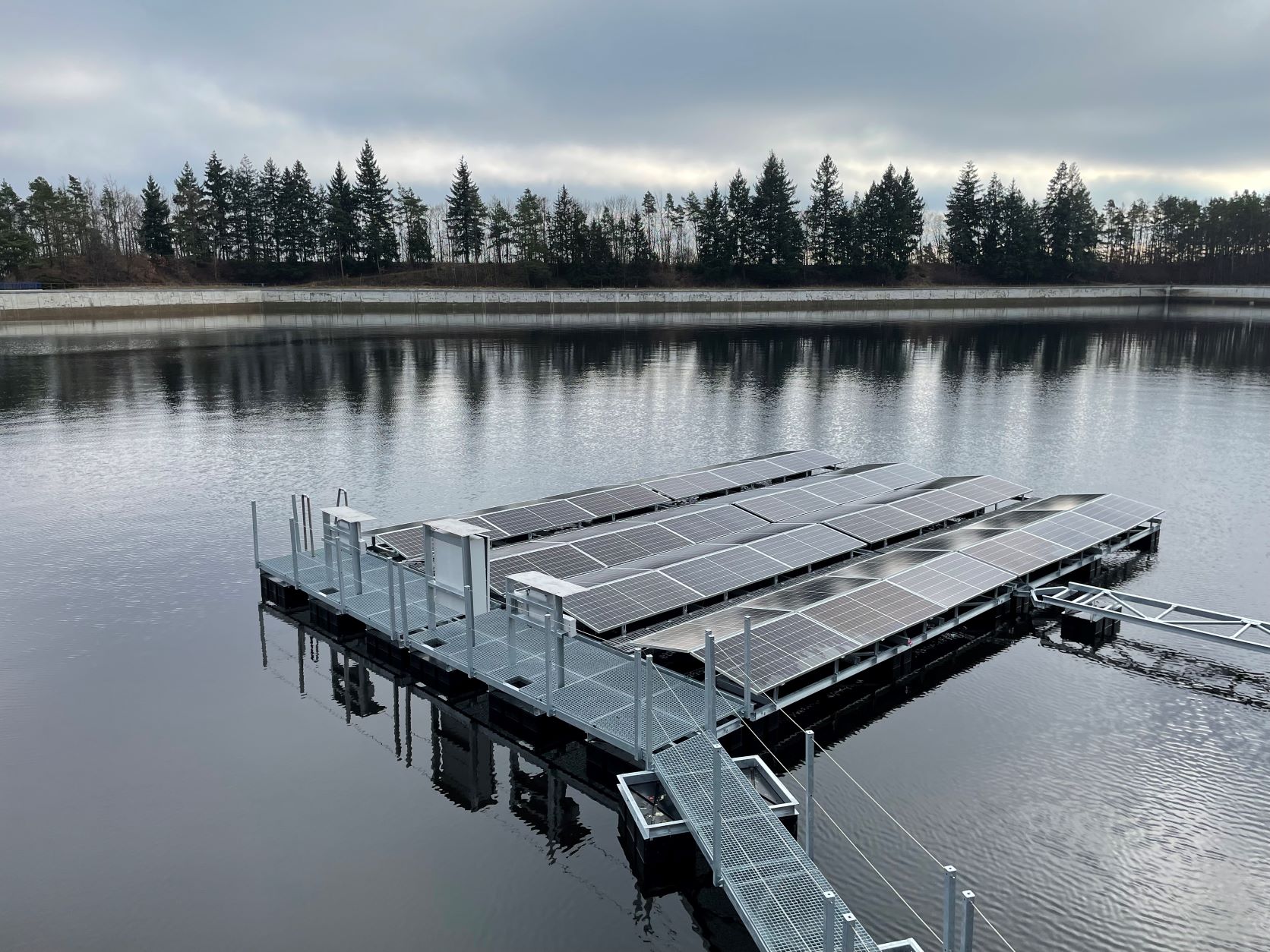 With the test floating solar power plant at Homole, the upper reservoir of the Štěchovice pumped-storage power plant, power engineers will be able to determine the properties of floating carriers and solar panels in a real environment, in combination with the daily operation of the pumped-storage power plant. In the summer, the pilot installation will be expanded into a regular power plant using solar power, with a capacity of 100 kWp. Overall, the upper reservoir could house solar panels with a capacity of up to 2.5 MW.