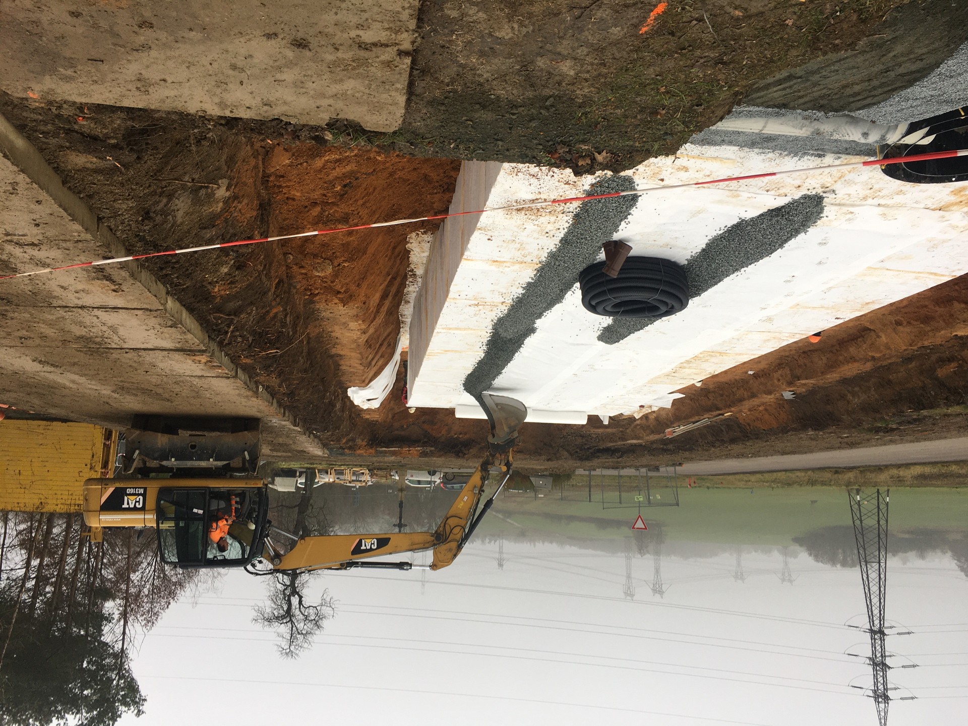 In a remote area, power engineers built a two-meter-tall underground infiltration reservoir with a total area of 200 m2, made of 280 honeycomb blocks. Water from an area of 1.95 ha is channelled to the reservoir – the new parking lot with a photovoltaic roof and a part of the existing parking lot that had not featured an absorption system. With a view to the scope and nature of the drained areas used for car parking, the drainage system is fitted with an oil-substance separator with a capacity of 350l/s. The infiltration reservoir is fully functional and prepared for its first rain. The new parking lot could be tested by drivers in April, together with the first supply of emissions-free power from the photovoltaic panels on its roof.