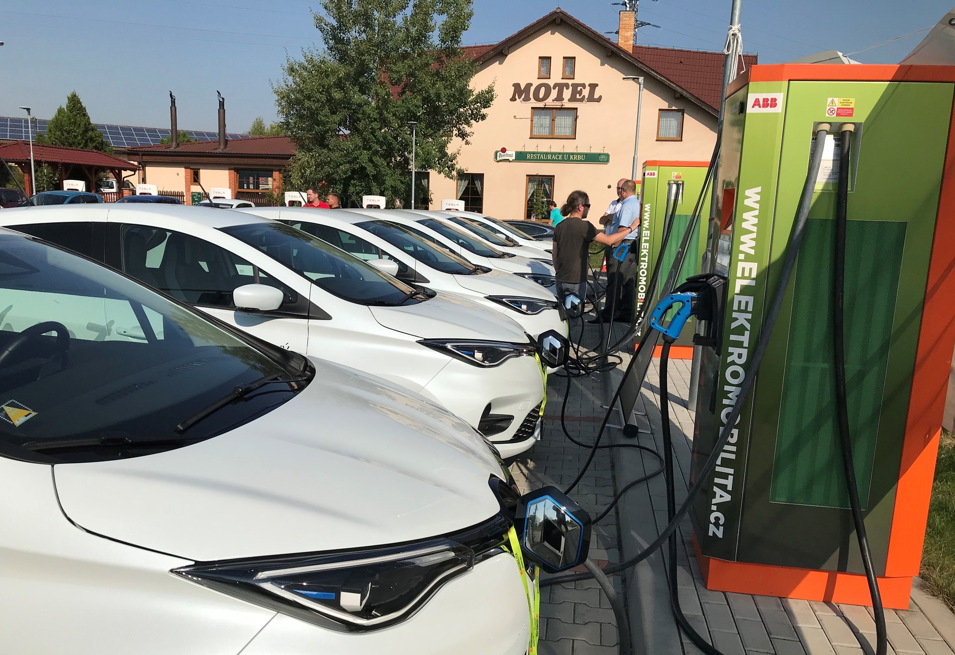 Twelve Renault ZOE electric cars with a battery capacity of 52 kWh purposefully discharged for the test, and against them the ČEZ set with three public ABB fast charging stations supported by a battery system with a capacity of 275 kWh and rooftop photovoltaics with an output of 20 kW. Thus, the cards were dealt before today's stress test of the charging system in Vestec, the first Czech simultaneous charging of 6 e-cars from three stations. It also does not happen every day that 12 e-cars of the same brand charge their batteries in one location in a few hours.